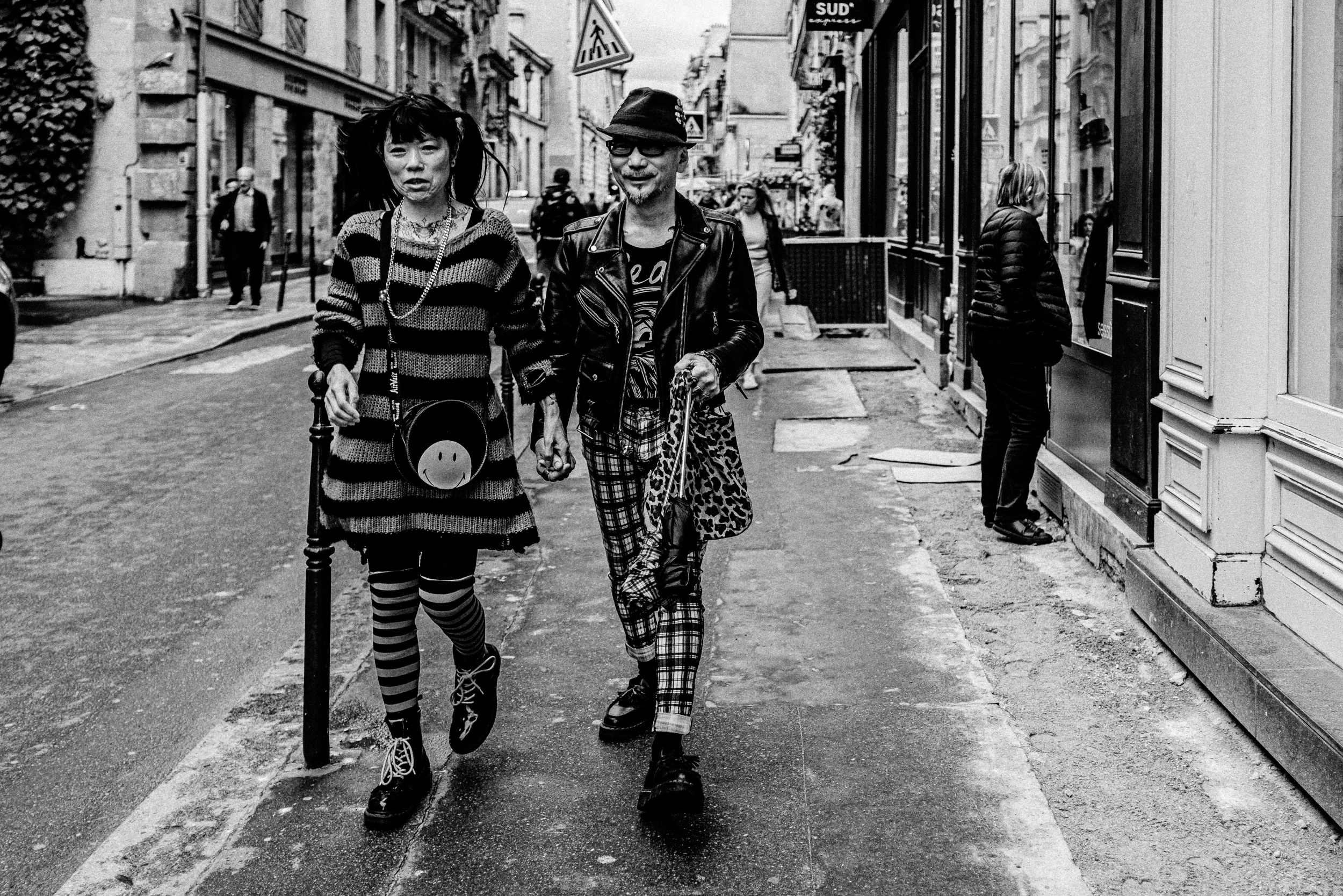 The street photographers who inspire my approach to photography include the best-known, such as Robert Doisneau and Henri Cartier-Bresson, who are essential for me, as well as Frank Horvat, whom I met at the 'Les Italiens' exhibition, and Elliot Erwitt, Bruce Gilden and Daido Moriyama. Their work influences my photography unconsciously; I try to capture similar situations and poses.